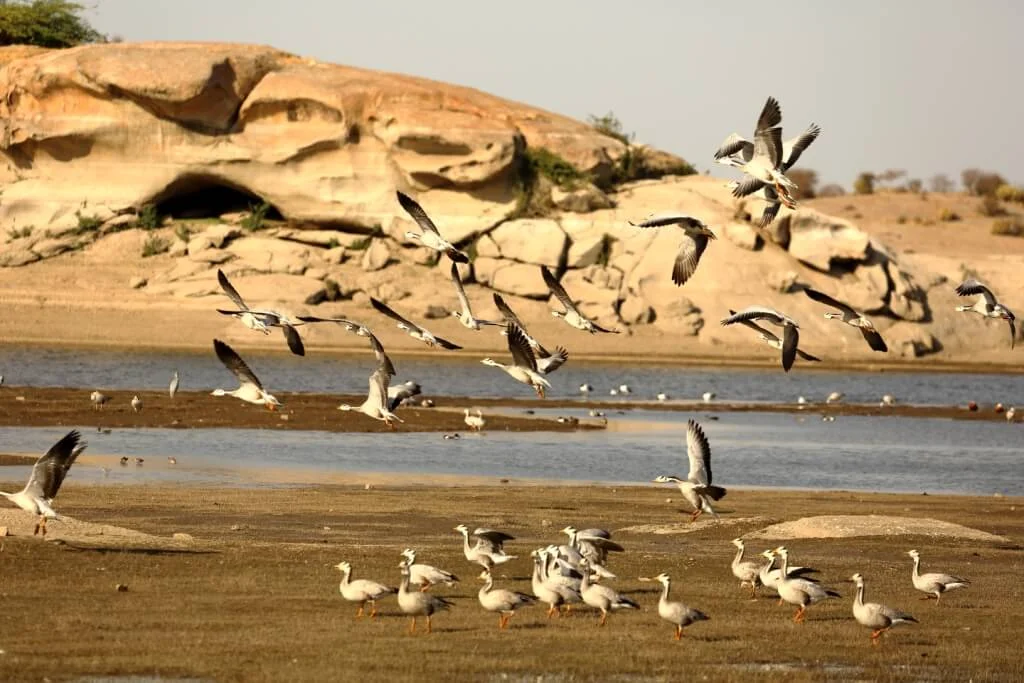 Safaris are conducted in open gypsy vehicles, accompanied by a professional naturalist guide and experienced local trackers. Along with leopards, guests may spot striped hyenas, foxes, crocodiles, blue bulls, and migratory birds returning to their roosts.